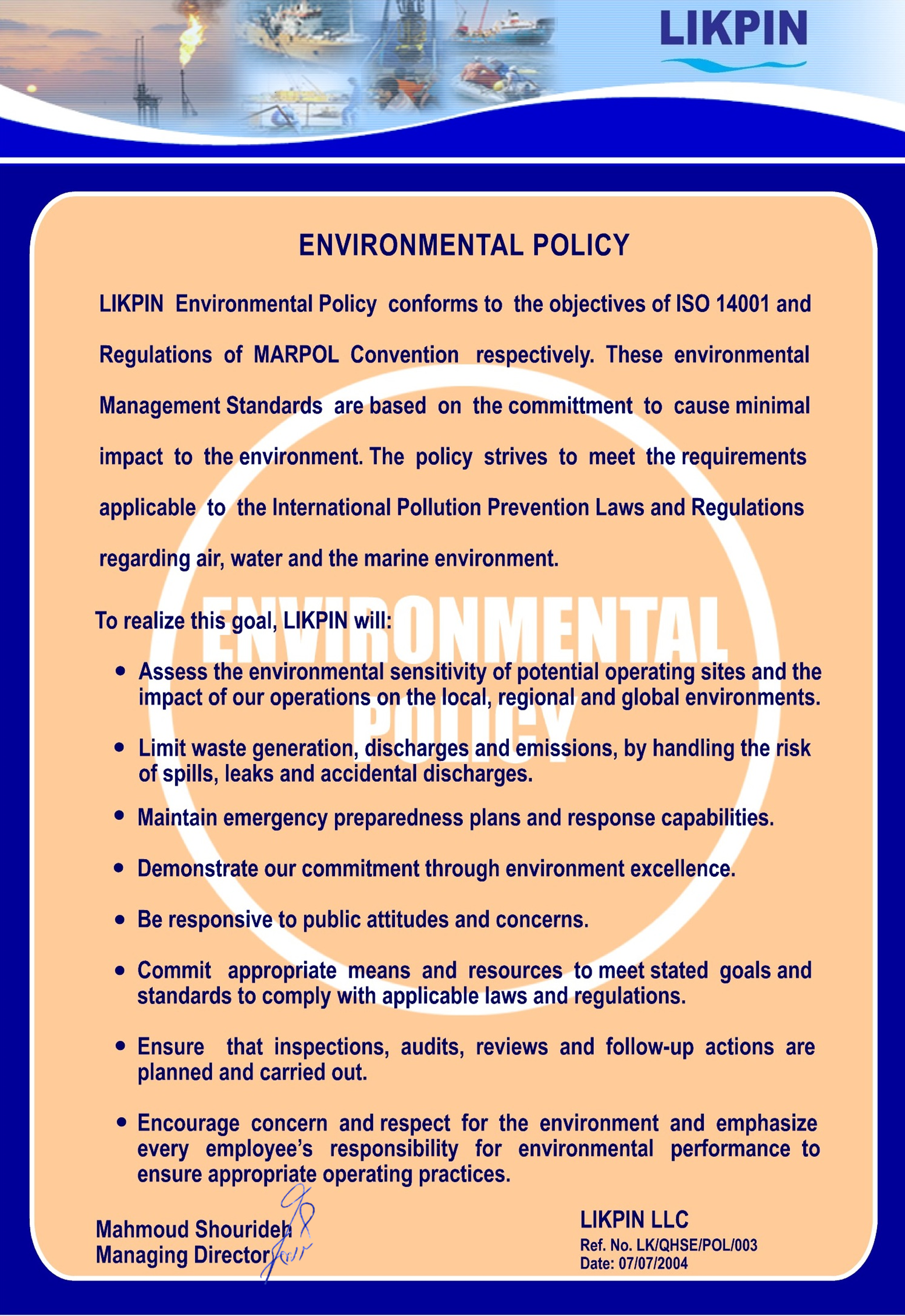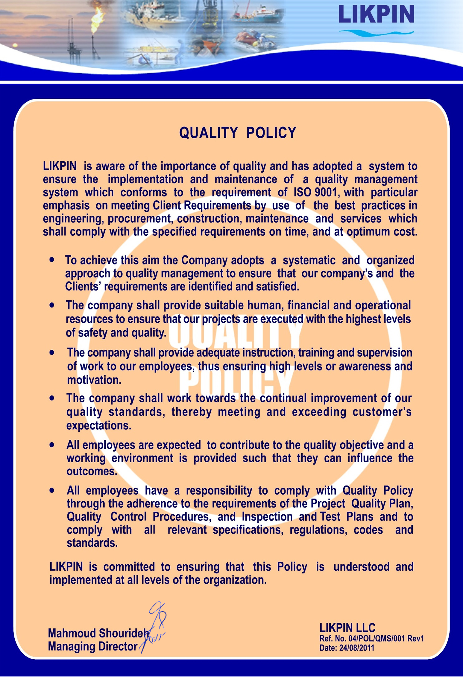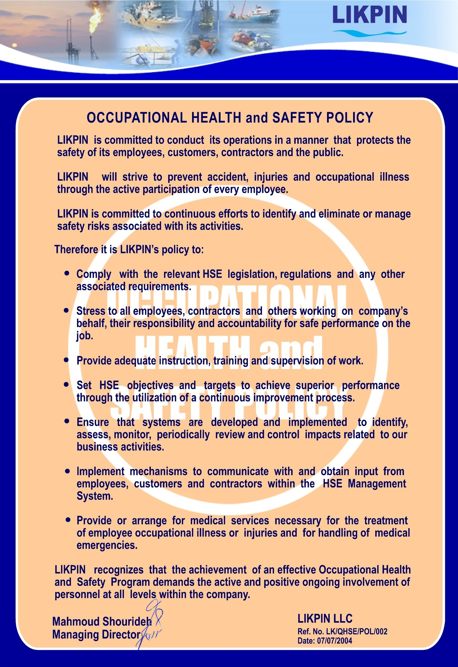 LIKPIN's QHSE Policy encompasses:
